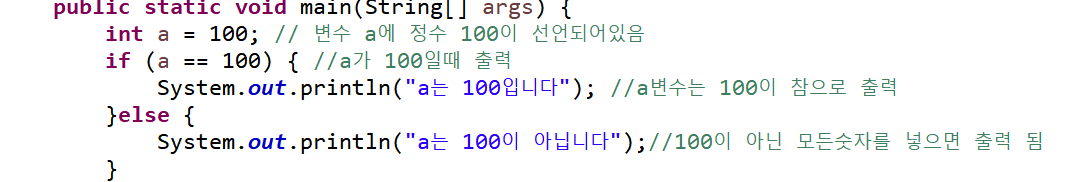 이 예제에서 100이 아닌 모든 숫자를 넣으면 else가 실행됩니다.