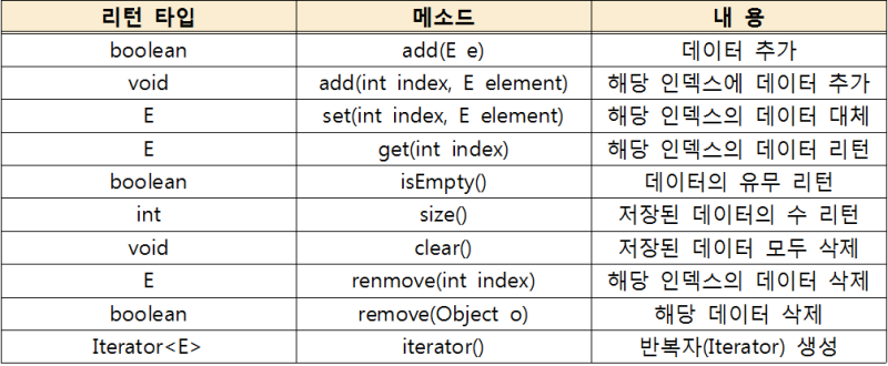 객체 배열을 사용하는데 필요한 여러 메서드들이 구현되어있음.